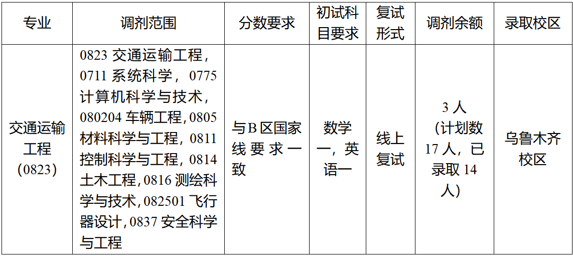 新疆大学交通运输工程学院2026年硕士招生调剂公告(第二批)