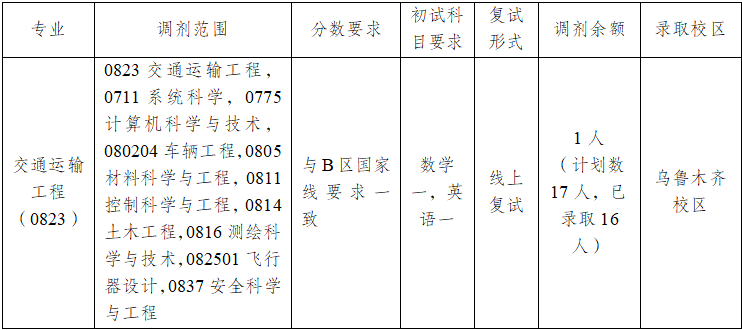 其他调剂及复试相关要求详见新疆大学研究生院官网公布的《新疆大学2026年全国硕士研究生招生考试调剂工作通知》和我院官网公布的《新疆大学交通运输工程学院2026年复试录取工作实施细则》。