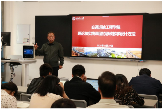 为深入探讨思想政治教育与理论实践课程的深度融合,提升教师思想政治素质和教书育人能力,交通运输工程学院于2025年10月29日下午在学院A405教室举行了“思政”主题报告会。学院领导、全体教职工参加了本次会议。