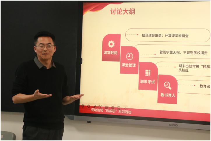 李兴源老师指出当前教师面临着教育在管理松紧、评价尺度与身份认同的多重困境中寻求平衡的困境。何鹏老师的报告政治导向鲜明、专业逻辑严谨、实施路径清晰,充分体现了党建引领与专业建设深度融合的示范效应。李兴源老师的报告引人深思,体现了党建引领教育教学的突破作用。