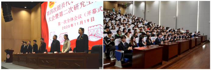 为深入学习贯彻党的二十大精神,全面落实立德树人根本任务,交通运输工程学院于2025年11月19日18:00在图书馆学术报告厅隆重召开第四次团员代表大会、学生代表大会暨第二次研究生代表大会。学院党总支书记冉武平老师、学院党总支副书记依力亚尔·阿吉木老师、学院辅导员老师以及教师代表出席了本次大会。校团委、校学生会、校研究生会代表出席大会并宣读会议批复。