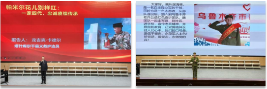 本次活动的高潮,定格在两位退役军人的深情宣讲之中。全国最美退役军人、塔什库尔干县义务护边员龙吉克·卡德尔声情并茂地讲述了一家四代人七十载如一日扎根帕米尔高原,以赤诚生命守护祖国边境线的壮丽故事,生动且深刻地诠释了融入血脉的绝对忠诚。自治区爱国拥军模范、乌鲁木齐市老兵公益宣讲队队长居海林,与大家分享了他退伍后十八年来持之以恒开展红色宣讲、用心关爱烈军属、在抗疫斗争中挺身而出的光辉经历,充分彰显了“退伍不褪色”的崇高奉献精神。