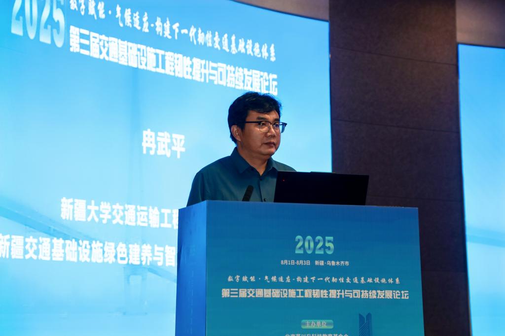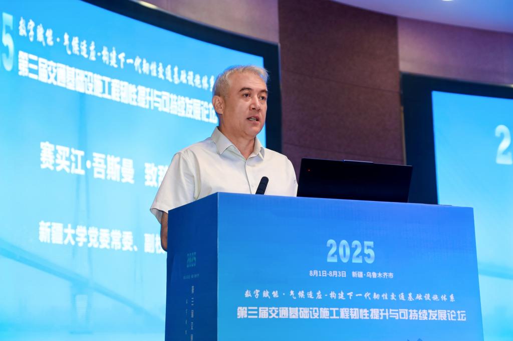 新疆大学党委常委、副校长赛买江·吾斯曼在致辞中强调,新疆大学赓续“抗大第二”百年精神,始终以服务国家和自治区战略为使命。他指出,新疆大学将继续发挥智力支撑作用,积极推动交通基础设施的科研创新与实践应用,服务“一带一路”核心区建设,共同构建更安全的韧性交通网络、更高效的智慧交通体系、更绿色的可持续发展模式。